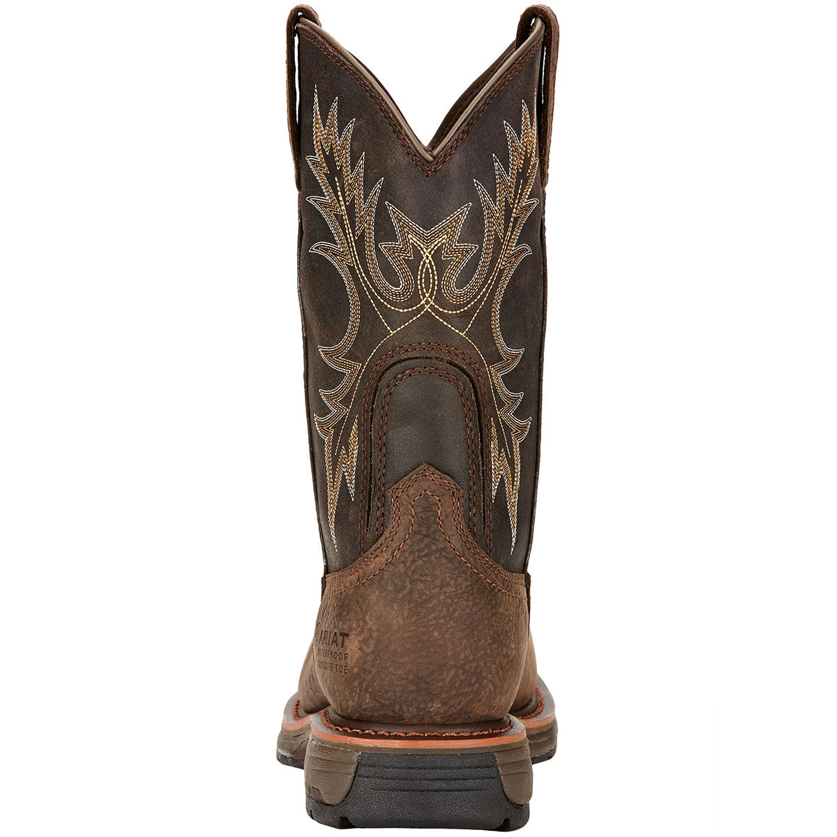Ariat Workhog Wide Square Toe H2O in distinctive Brown Bruin Color is just the hard working work boot you’ve been looking for. Featuring a composite safety toe and extra wide shank the Workhog delivers maximum side-to-side stability and lightweight cushioning. Dryshield waterproof breathable construction with Mesh lining is designed to stand up to the most challenging wet conditions ensuring that you stay dry and comfortable no matter what your work day brings you. The distinctive rugged looking WorkHog is built for harsh outdoor work environments, making it a perfect all around work boot whether on the farm or in the field.