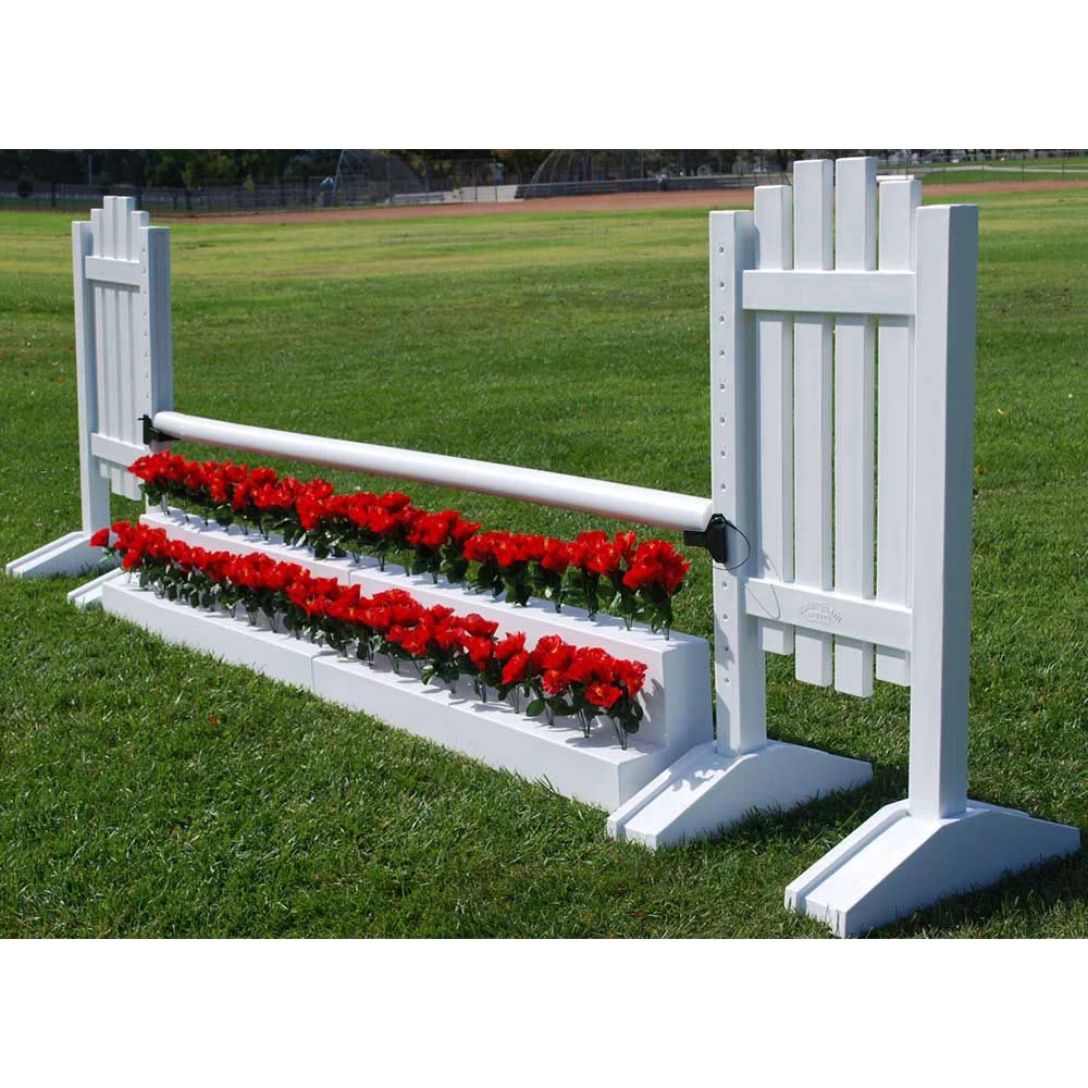 The Burlingham Flower Stairs provide two stacked rows of flowers raising your ground line up to 15″ plus the height of any flowers you choose to add. The two piece set will fill your jump and last for years in all weather conditions. No painting needed, no wood boxes falling apart. Designed with a plug at the bottom to fill with sand for added stability in windy areas. Add any flowers of your choice for a show-ready presentation.