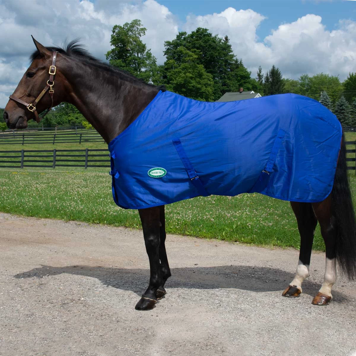 From the Country Pride Collection, this solid color cotton/poly stable sheet is the answer for keeping your horse clean and tidy at shows. Designed with a lightweight, cotton fabric. Complete with nylon lined shoulders, two-buckle open front and Velcro assist, bias surcingles and detachable leg straps for total adjustability; as well as fleece wither protection.