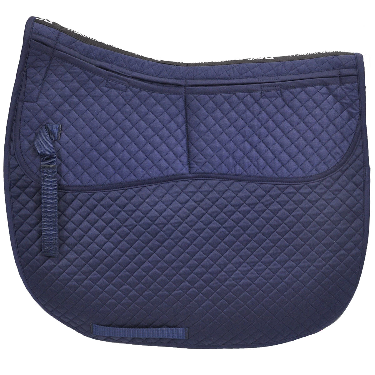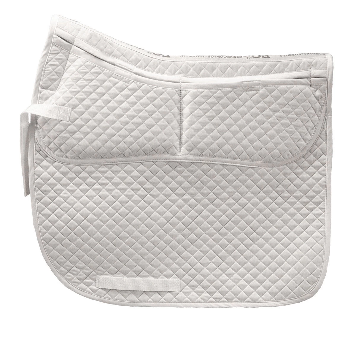 ECP Cotton Correction Dressage Pad with Memory Foam inserts. The memory foam shims are contoured specifically for both front and rear placement to give you the perfect fit. The contoured top line of the pad promotes constant airflow for excellent circulation. It absorbs and wicks away moisture leaving your horse feeling cool and dry and is ideal for everyday use.