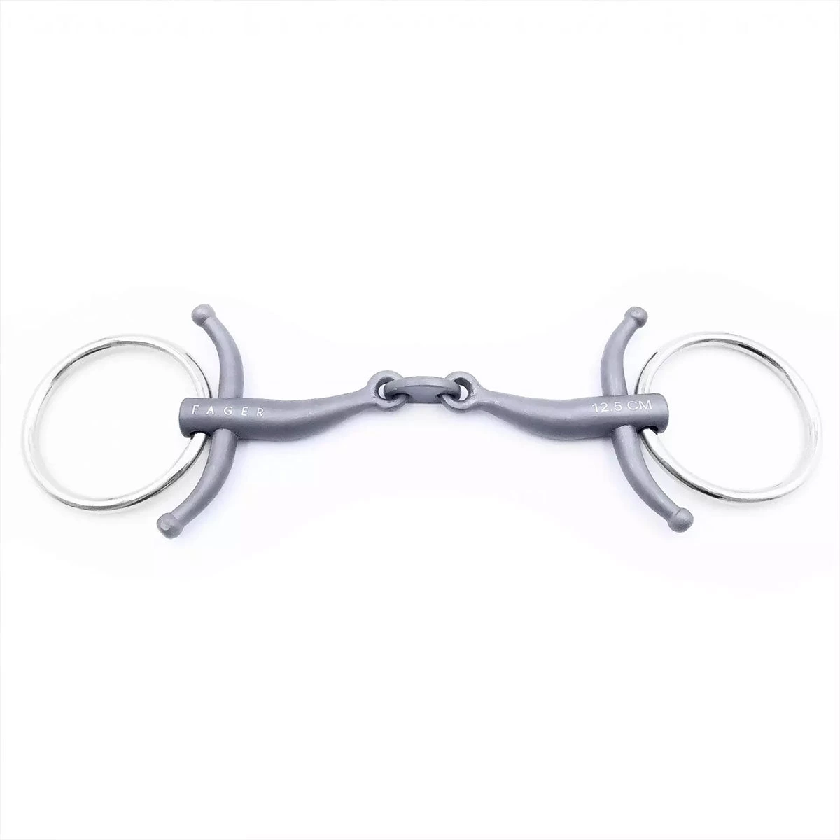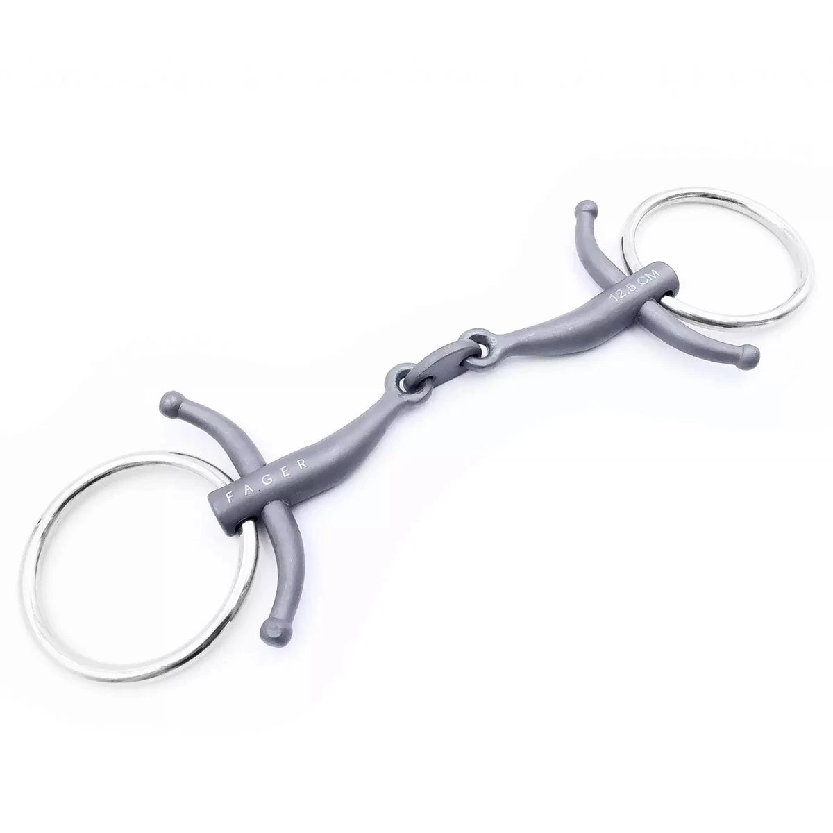Carl is a durable and lightweight double-jointed titanium bit designed with the sensitive horse in mind. Carl follows the natural shape of the mouth with a short centerpiece that lays flat against the tongue and eliminates palate interference. It also softens excessive pressure to the center of the tongue and presents a more consistent feel across the mouth. A horse with a sensitive tongue will begin to accept the contact and be more willing to work. Carl even suits horses with a low palate together with a big tongue. These horses are difficult to find a suitable bit for. Fager bits are created in collaboration with veterinarians, offering a forward-thinking approach in order to create revolutionary design to accommodate differing horse anatomy. This thoughtful process puts the comfort and wellbeing of the horse at the forefront of every Fager bit design.
