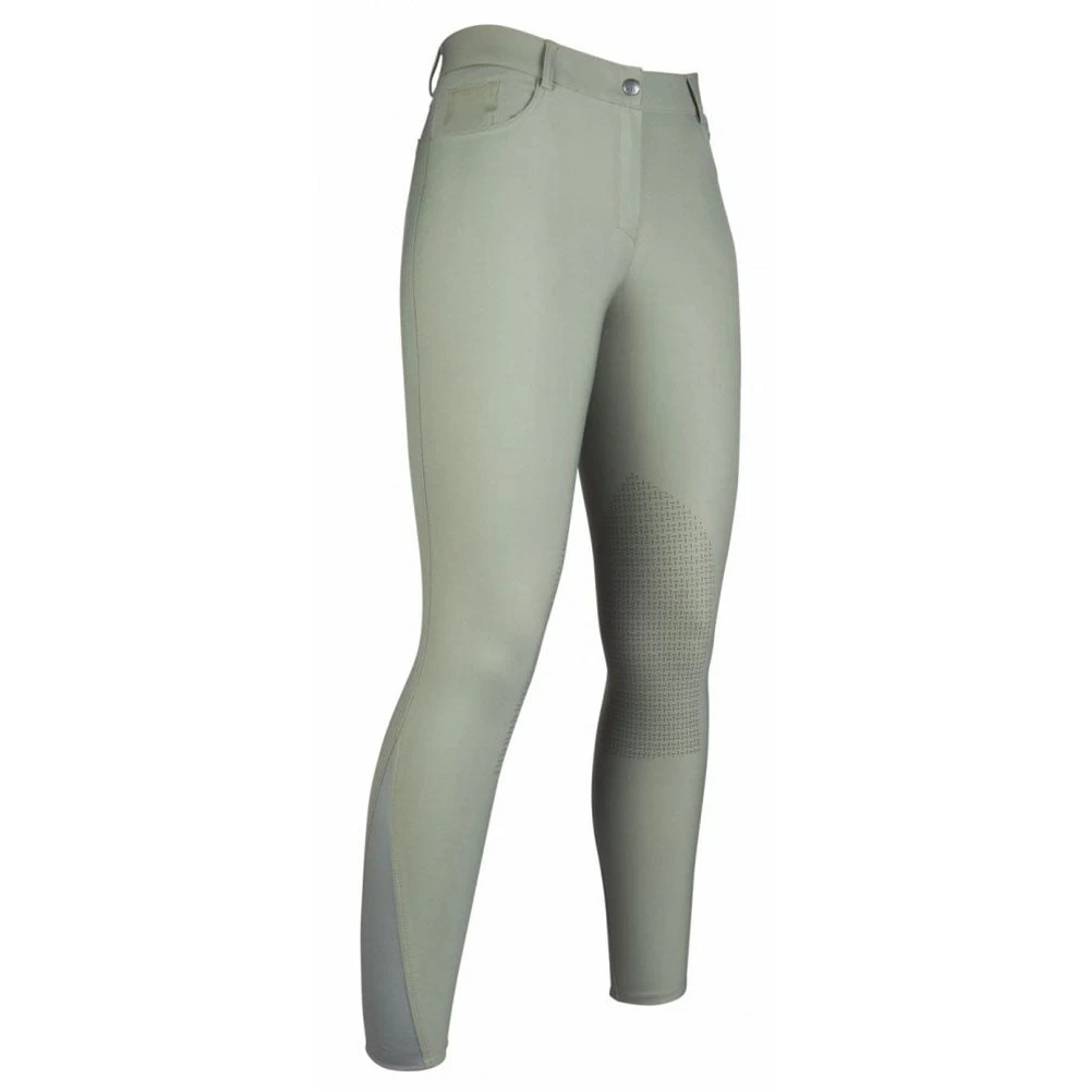 Lock in style at an economical price with the HKM Sunshine Knee Patch Ladies Breech. This silicone print style will keep you gripped to the saddle without compromising movement or mobility. With two front pockets and two back pockets, you can keep all the must have essentials on you at all times, in the barn or in the saddle! The mid high rise waist is figure flattering and will not bunch up while riding. Perfect for every day use in and out of the ring!