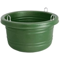 Made with durable polyethylene plastic Horseman’s Pride Large 30 Qt Feed Tub is durable for daily long lasting use. Can be placed on the ground or mounted up on the wall for feeding. Commonly used for feeding hay cubes or soaking mashes.