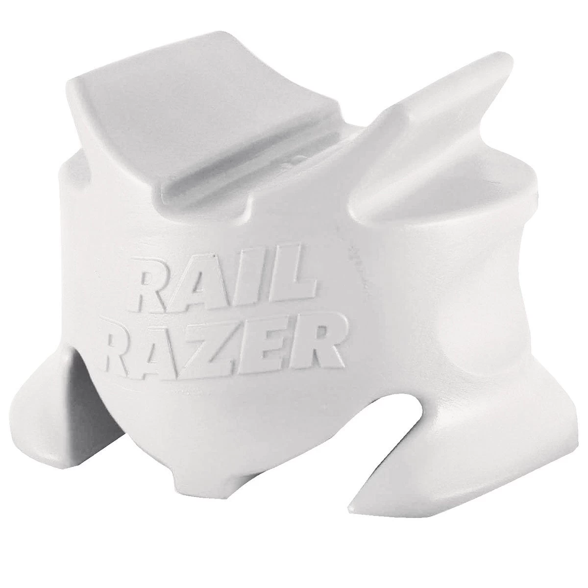 - Base measures 6.75″x5.5″ and raises the rail 3.5″ up from the ground surface