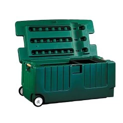 Sturdy tack trunk by Horsemen’s Pride to keep all of your tack and supplies organized. The hinged lid can be padlocked to keep your tack safe! Great for traveling, barn and horse shows!