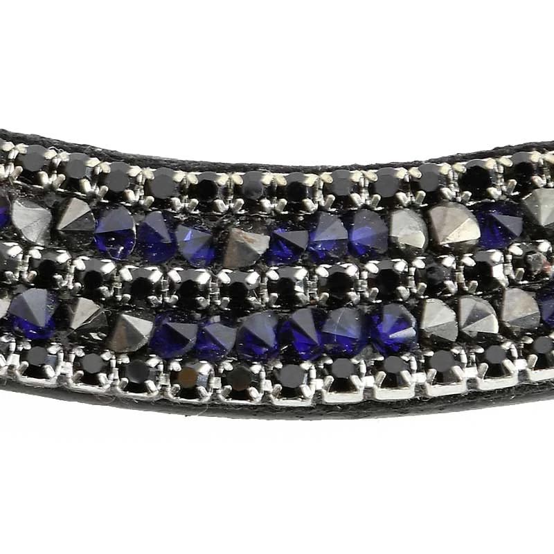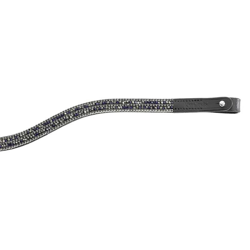 Elegant crystal accented curved browband adds a touch of sparkle to your bridle. Browband features a button closure on the sides for quick and easy replacement. Your horse will look amazing with the crystal stones dancing in the light as your horse moves in the show ring.