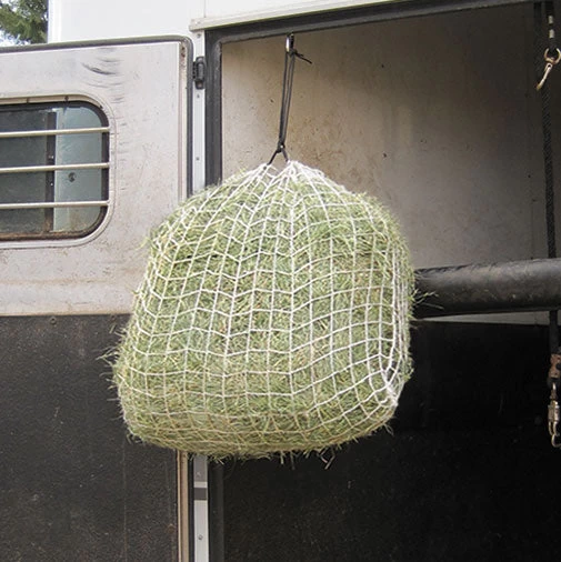 Kensington Freedom Feeder Full Bale Hay Net’s goal is for every horse to have a high fiber, low calorie forage available 24/7. Using Freedom Feeder is a way to “free” us from meal routines and help our horses live a happier, healthier and more natural life. Think of them as a “Pasture In A Net”. Freedom Feeders may help alleviate many meal time anxieties such as weaving or pacing, reduces the likelihood of colic. This net is designed for the trailer, or for daily use with miniature horses, goats, sheep, or calves for slow feeding meals. It has 1” mesh openings, measures 2.6’x2′ and holds up to 13 pounds of forage hay. It is top loading made with drawstring cord. Comes with a large carabineer for hanging.