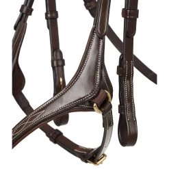 The LeMieux Grackle Figure-8 Bridle features anatomical design and premium styling at an affordable price point. The shaped crown piece, browband and unique figure-8 noseband are all generously padded for the horse’s comfort. The throatlatch is adjustable on both sides of the bridle for a polished and precise fit. The bridle comes with two detachable options for the center nosepiece, including fluffy sheepskin and padded leather. LeMieux bridles are made from beautifully soft European leather and have matching reins (sold separately).