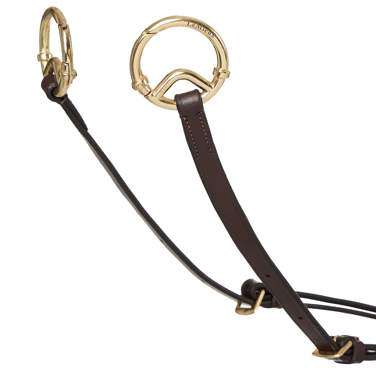 The LeMieux Breastplate is a beautiful and functional addition to the leather line. The smart design includes an adjustable padded top piece with elasticated neck straps and padded cushioning at the chest. A removable running martingale clips easily to the center chest ring, and features signature custom designed martingale rings that can be clipped on and off without unbuckling the reins or removing them from the bit or bridle. Web loop straps attach to the billets, making sure the saddle stays securely in place.
