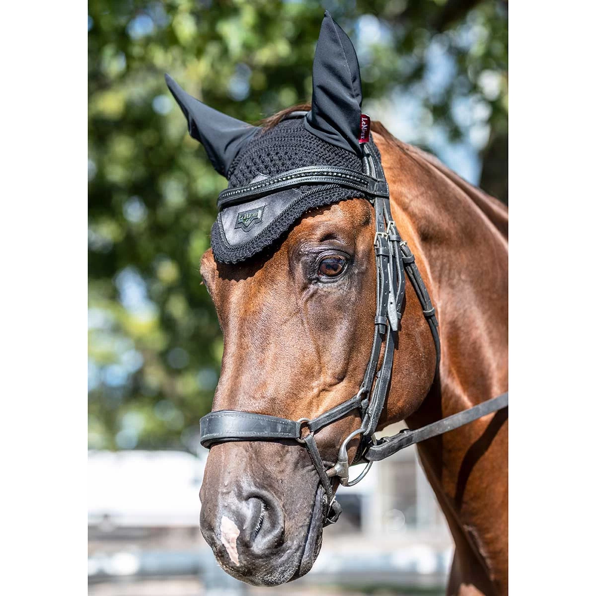 Make a statement with the signature LeMieux Loire Fly Hood. Featuring an embossed metal motif, these luxurious fly veils are a stylish addition to any collection. Pair with other items in the LeMieux Collection or use an eye-catching accessory to any competition or schooling look.