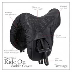 The cleverly designed LeMieux Pro-Kit Saddle Covers keep all your necessary saddle’s strap goods and billets in place and fully protected. Made of completely waterproof, durable polyester with a soft fleece lining to protect your investment from scratches, dirt, and debris. The adjustable elastic drawstring allows it to fit most shapes and sizes of All Purpose, Close Contact, or Dressage saddles for a snug fit, while the over sleeve allows you to keep your girth secure on top of the cover to keep your saddle clean. A lower slot at the bottom on each side is designed to pass the girth straps through (mono flap saddles or dressage) for added security
