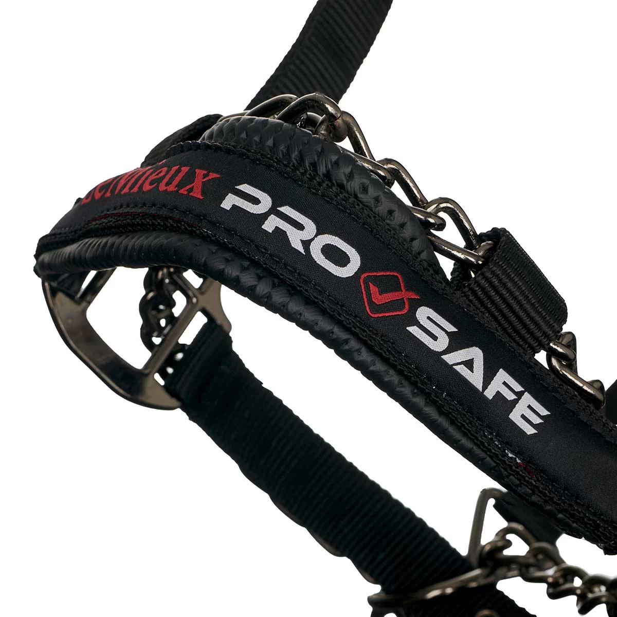 ProSafe Headcollar by LeMieux is ideal for controlling unruly horses. Ideal for any horse that you need some extra control, with the built in chain. The Pro Safe halter has strong twin nylon with solid metal chain and hardware. The triple ring design creates 3 options for varied level of control. PVC rubber foam padding over the nose and poll for comfort. The LeMieux ProSafe Headcollar is adjustable at the crown and chin.