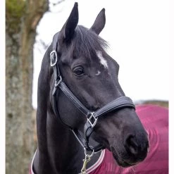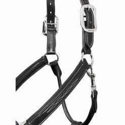 Anatomically shaped Leather Halter by LeMieux. This high quality padded halter has elegant stitching detail for a classic look. Featuring anatomically shaped crown and noseband to provide complete comfort to the horse. Also features double adjustable crown piece and adjustable chin strap for ideal fit. The LeMieux Leather Halter has solid metal hardware with subtle LeMieux branding.
