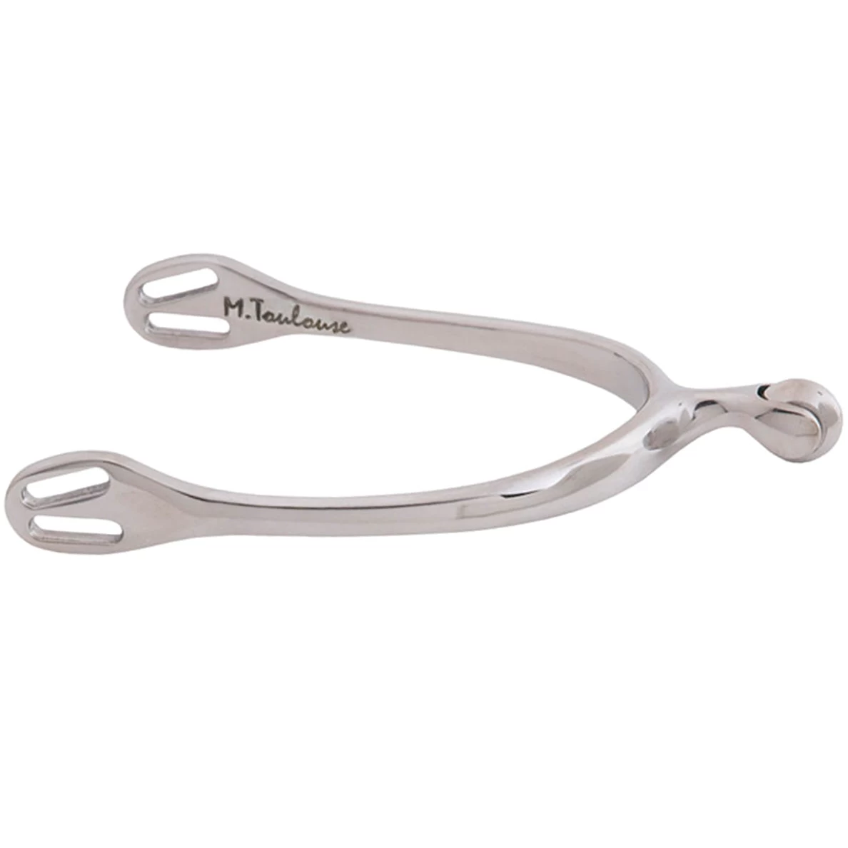 Made by M. Toulouse, the vertical soft touch ball spur is stainless steel with a rounded design meant for more sensitive horses. It is a humane and gentle yet effective spur. The strap slots are angled for a more comfortable feel when the heel is down.