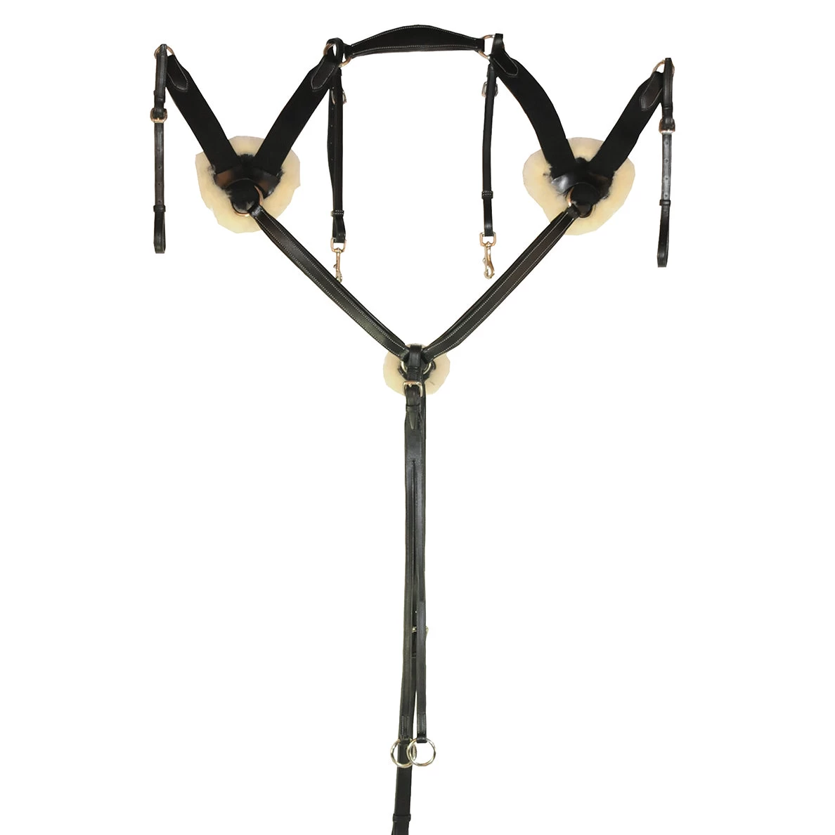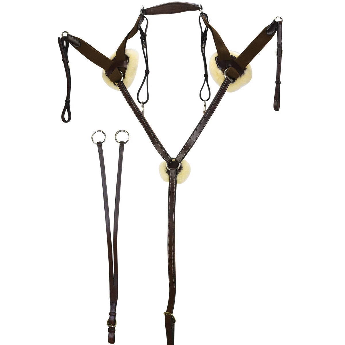 Nunn Finer 5 Way Breastplate has five contact points to provide a fantastic and secure fit. Quite easy to use and adjust, great quality American leather. Matching running attachment included.