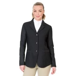 The Ovation AirFlex 3 Button Ladies Show Coat is beautifully tailored fit provides the perfect show ready silhouette. Made in the Airflex ultra mesh stretch performance fabric that is lightweight and offers superior breathability for core comfort in warm weather.