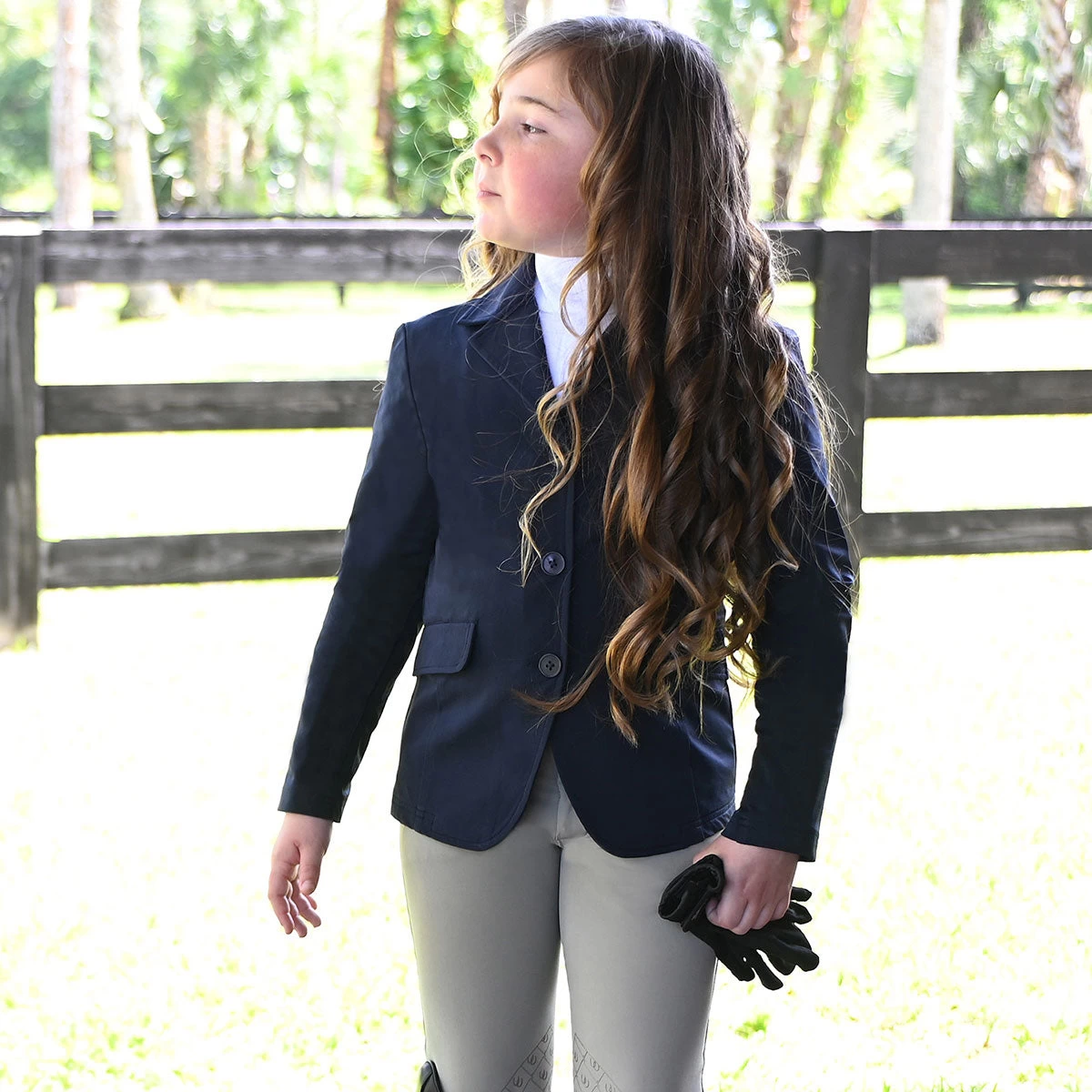 The Ovation Destiny 3-Button Show Coat is a must-have for fast-growing kids who need a stylish, comfortable show jacket without breaking the bank. Made to move and groove with you over even the most scopey jump (or worst chip), this classically-styled, lightweight jacket stretches and gives easily through shoulders, torso, and upper back. The contemporary 3-button front features a hidden upper to eliminate button gapping, while the double back vent, flap pockets, and streamlined tailoring provides a slimming, flattering fit. Plus, the price is unbeatable! Imported.