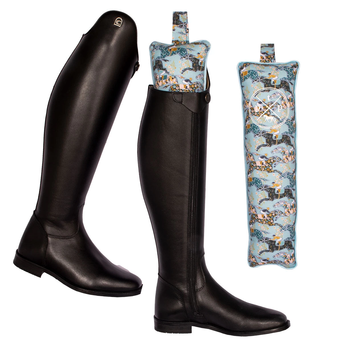 Keep your tall boots standing up! These Fabric Boot Trees are designed to help keep your English equestrian boots from flopping over! They taper towards the ankle to fit most English boots! Measuring 17″ tall, they are roughly 5″ wide and made with premium fabric, and stuffed with poly stuffing!