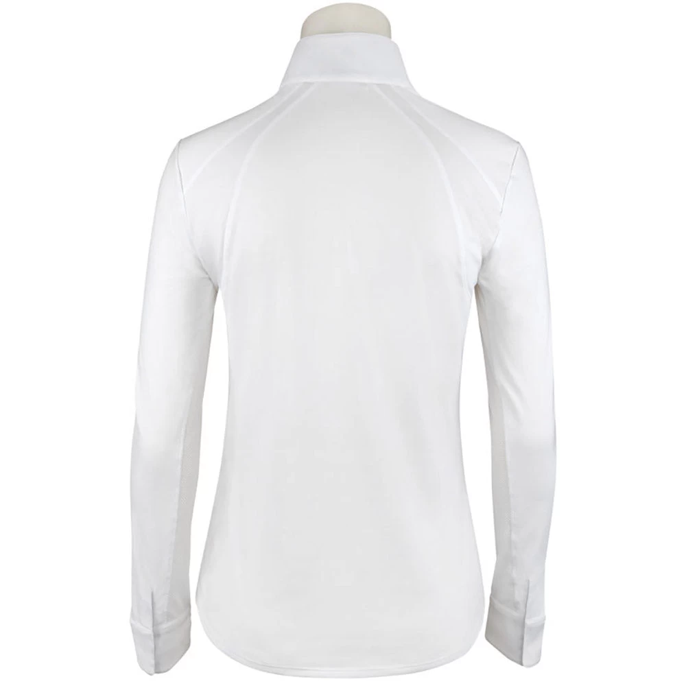 The RJ Classics Maddie 37.5 Ladies Show Shirt blends cutting edge technology with traditional styling to form the perfect synergy. The fabric features 37.5 patented thermo-regulation technology which has proven to help your body manage its core temperature and therefore, increase stamina. It keeps you comfortable by helping your body to maintain an optimum core temperature of 37.5° Celsius (99.5° Fahrenheit) which is ideal for peak athletic performance. The particles are naturally derived and work for the life of the product (it will never wash out!) This style also features a stylish Paw print trim detail, a textured mesh for added comfort and breathability, and a zipper placket with snap collar to modernize this traditional look.