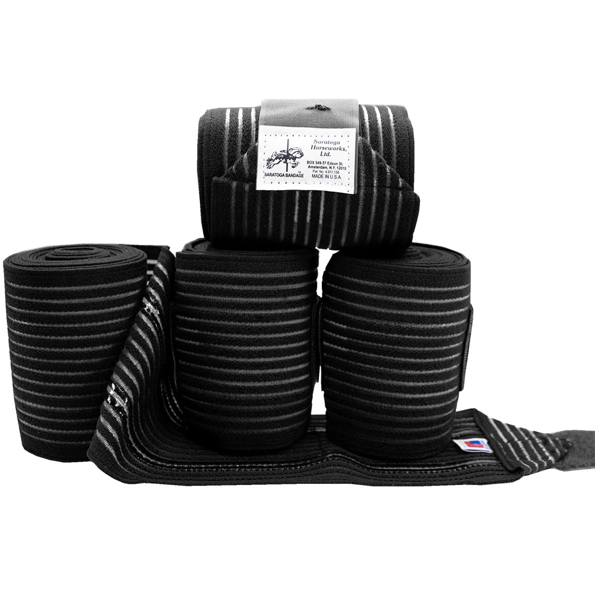 The Saratoga Bandages offer superior leg protection and support, no matter the discipline! These patented wraps hold only 2 oz of water when soaking wet, making them great for horses that race, ride cross country, or for daily flatwork. The patented silicone application on the inside of the Saratoga Bandage has been further refined for a more secure fit and even pressure distribution on the leg. Sold in sets of 4.