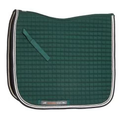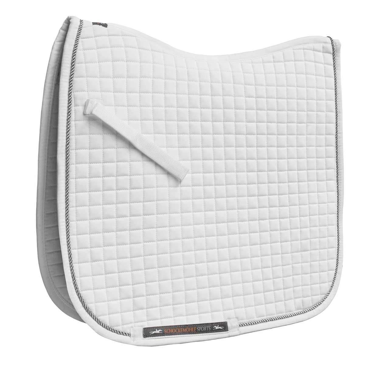 Schockemoehle Neo Star Dressage Saddle Pad is a lightweight quilted cotton pad that features fine traditional square quilting and moisture wicking quick dry lining. This contoured sporty design pad is highlighted by colorful two tone contrast stripes, shimmering silver roping and coordinating logo on the girth strap and topline. Available in a variety of colors this attractive pad is a must have for your horse’s wardrobe, ideal for every day use, perfect for schooling and clinics!