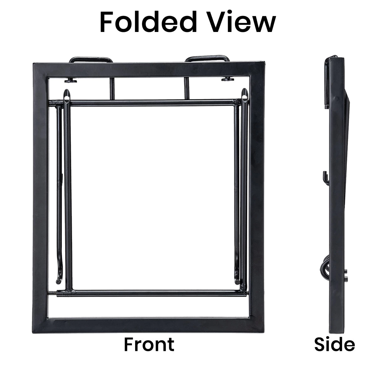 The Tough-1 Double Collapsible Hanger is a highly practical barn item that is great for home and away at shows. Easily hangs over a stall wall or fence, this double hook hanger is great for holding any tack not in use or being cleaned. The space saving design easily folds flat against the wall when not in use.