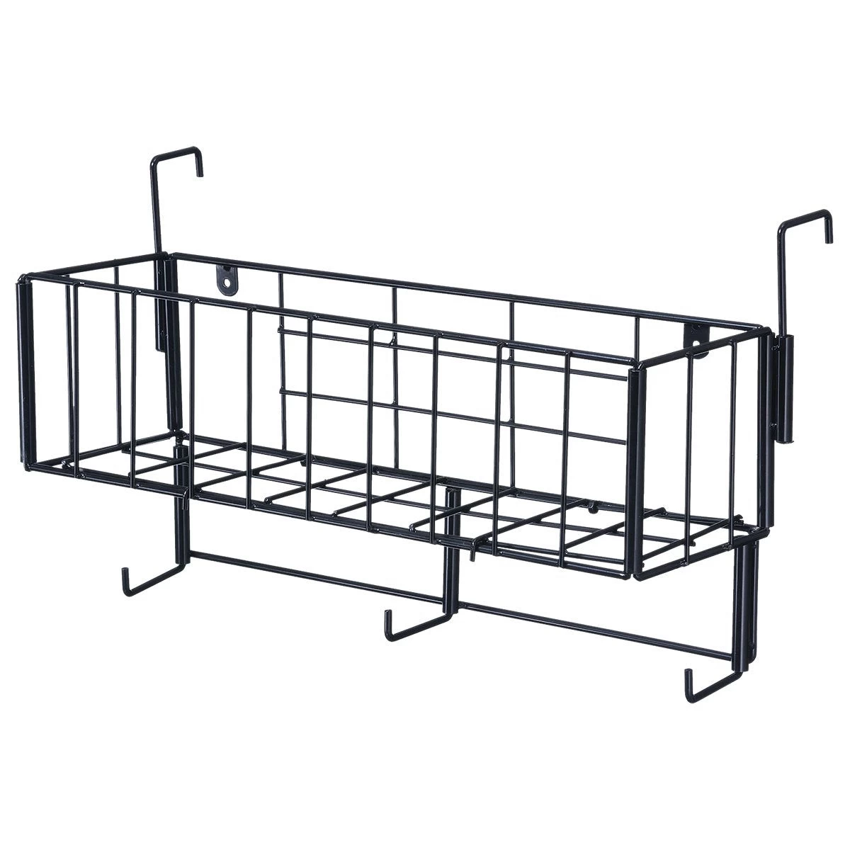 This convenient, portable barn esssential is a must have for any stable! The Tough-1 Portable Collapsible Basket with Bridle Hooks is a combo tack holder and storage unit all in one. Made of heavy steel construction that’s designed to hang over standard 2″ stall walls, the 6″ deep basket is perfect for holding treats, bottles, brushes, boots, and more. The sturdy 3 hooks underneath are designed to hang bridles, halters, leads and more, keeping your aisleways clean and organized. Folds flat for travel and storage, making it a perfect accessory when traveling for shows and more. Can also be permanently mounted with its 2 pre-drilled holes in lieu of mounting over a stall wall.