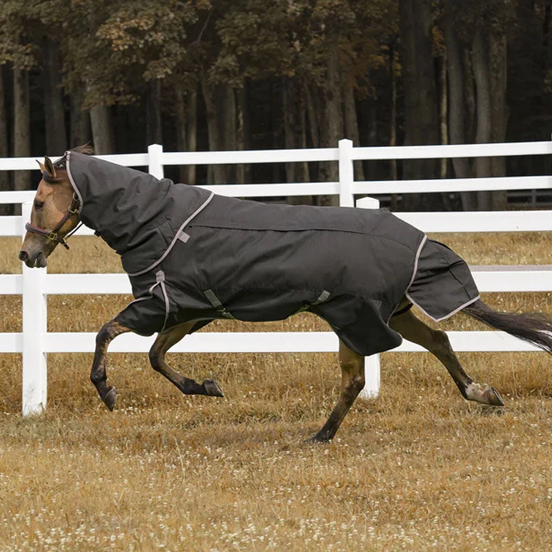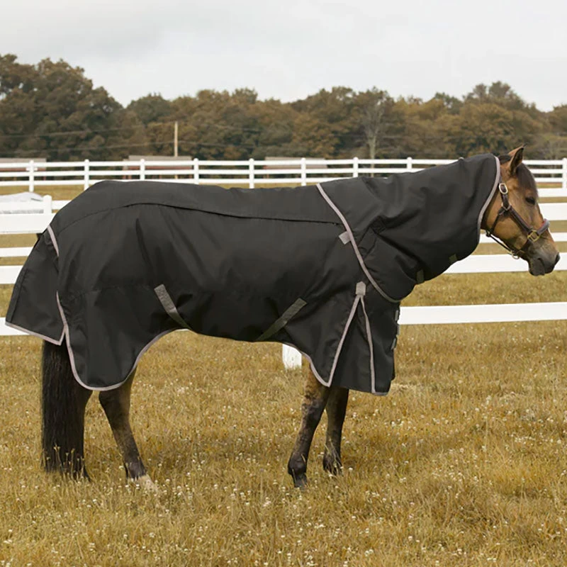4-in-1 All season blanket by TuffRider. Made from durable 1200D ripstop fabric makes this blanket durable and ideal for turnout. The 150 gram and 250 gram inserts provide warmth and allow you to customize your blanketing routine. Easily add or remove the inserts as the weather changes. The TuffRider 4 in 1 Blanket comes with a detachable neck cover to provide optimal coverage during inclement weather and will not restrict grazing. Made with a large tail flap to keep the rain and wind off of your horse. Shoulder gussets for freedom of movement.